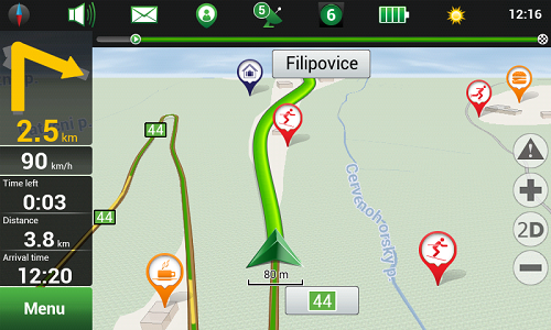 Balíčky navigačních map „Alpy”, „Kavkaz”, „Karpaty” a „Pyreneje” obsahují všechny důležité informace, které mohou být během cesty užitečné! Plány větších i menších měst ve vysokém rozlišení obsahují širokou škálu bodů zájmu: hotely, restaurace, kavárny a bary, kina a další kulturní místa a turistické atrakce, sportovní a sociální zařízení, obchody, nemocnice a lékárny, čerpací stanice a servisní střediska a mnoho dalších, které vám pomohou naplánovat cestu a užívat si dovolenou naplno. Okamžitý výpočet trasy a znalost aktuální dopravní situace pomohou dorazit do určeného cíle v nejkratším možném čase.