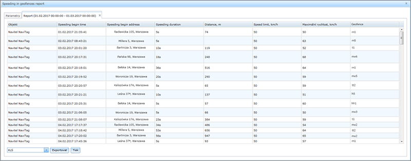 Na žádost uživatelů systému Navitel Monitoring byla přidána možnost vytvoření reportu při překročení povolené rychlosti v ohraničené oblasti. Tento report může být nastaven pro každý jednotlivý objekt monitorování. Uživatelé nyní mohou exportovat reporty na FTP server prostřednictvím funkce "Úlohy“. Aktualizovaná verze přináší možnost exportování reportů ve formátu XLS.