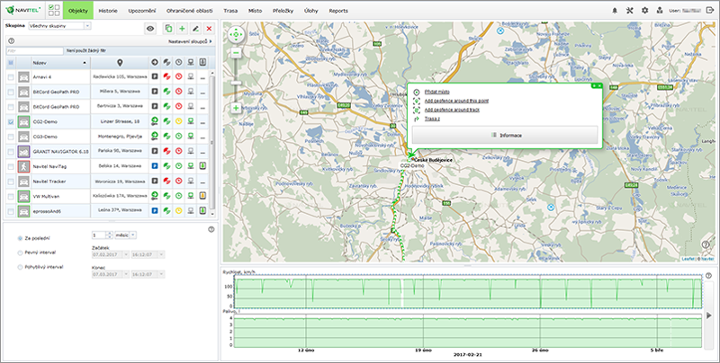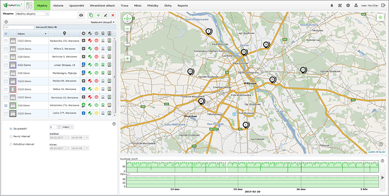 Cloudová verze Navitel Monitoring umožňuje pomocí webového rozhraní v reálném čase lokalizovat přesnou pozici vozidla, určit stopu pohybu a monitorovat další důležité parametry jako stav tachometru, rychlost, spotřebu paliva a směr pohybu.