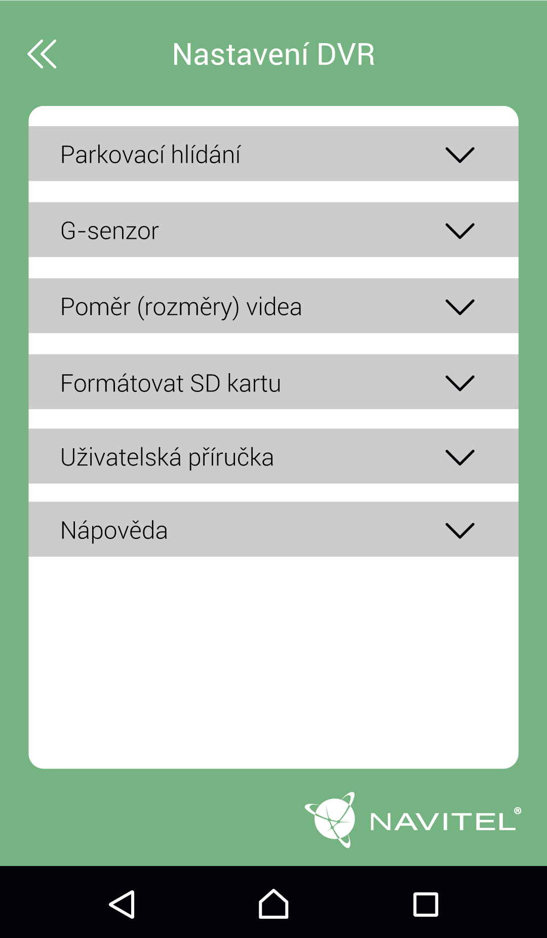 Aplikace Navitel R1000 umožňuje spravovat základní nastavení záznamové kamery, stejně jako formátovat SD kartu v DVR – to vše z pohodlí Vašeho chytrého telefonu nebo tabletu.
