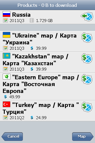 High-demanded by our users option of license additional official map packages purchase right from the program.