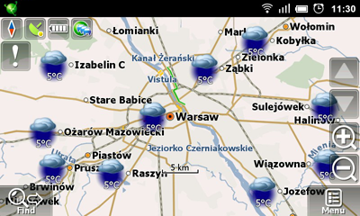 To know weather forecast at the closest municipalities or at the point of route destination, there is no need any more to go to menu Pages-Weather in Navitel Navigator! Now weather at any city of the world can be displayed directly at Navitel map. You just need to activate this option in Menu-Settings-Online services — Weather.