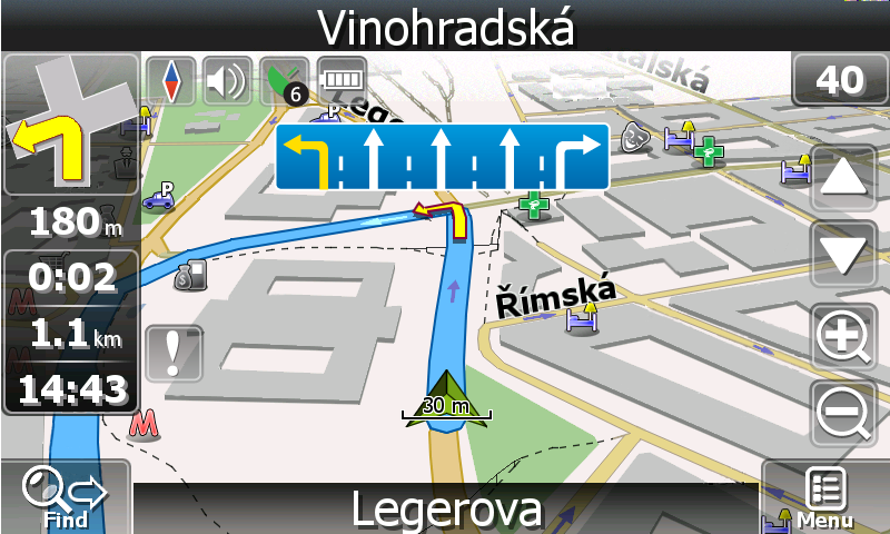 Navitel will help to get ready for the next maneuver in advance, indicating the right lane for changing. User can choose, whether the hint for priority lanes at maneuver will be indicated at the top or at the bottom of display, or deactivated at all in the program settings.