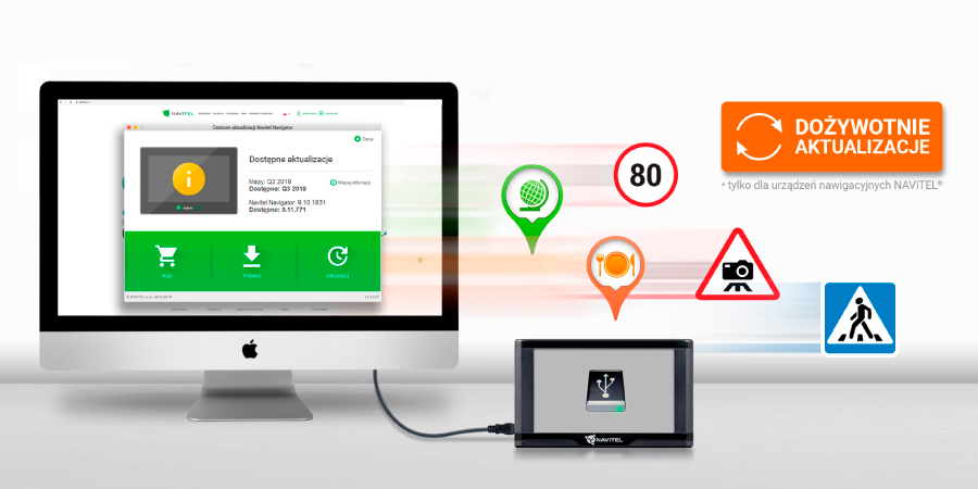 Firma NAVITEL® wydaje darmowy program Navitel Navigator Update Center dla użytkowników oprogramowania macOS. Umożliwia on szybką aktualizację map i oprogramowania na urządzeniach nawigacyjnych z systemem operacyjnym Windows CE/Linux.