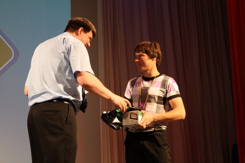 Специальный приз (автомобильный навигатор Navitel) за лучший ответ на задание от Навител завоевал школьник из Краснодарского края Алексей Бушков. Призы победителям вручил заместитель генерального директора ЗАО «ЦНТ» по картографии П.Л.Платонов.
