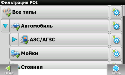 Для корректной работы нового фильтра POI после обновления Навител до версии 5.0.1.26, рекомендуется сбросить настройки всех категорий фильтра «по умолчанию».