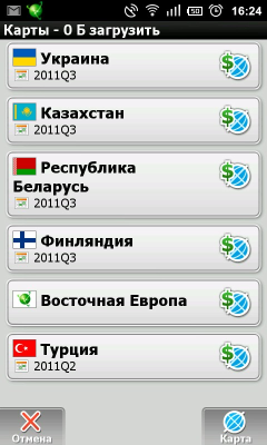 Для покупки лицензии на программу при запуске пробной версии, нажмите кнопку «Купить» после запуска программы, и выберите программу с необходимым комплектом карт. После чего вы будете переадресованы на страничку Android Market, где сможете найти подробное описание продукта, цену на него, и совершить покупку.