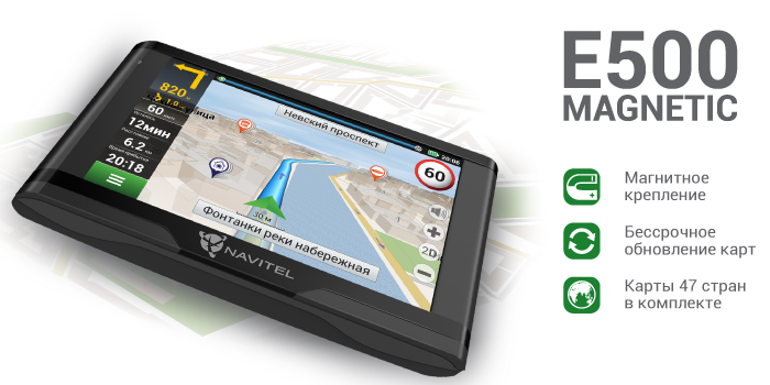 NAVITEL® выпускает автонавигатор NAVITEL E500 MAGNETIC с магнитным креплением