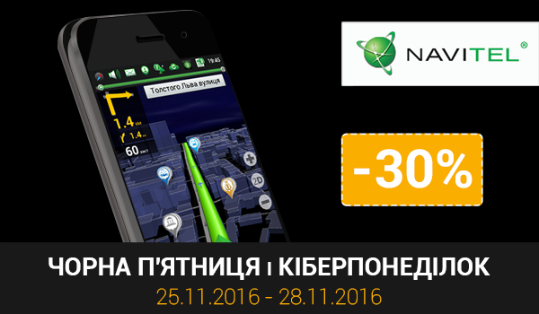 Компанія NAVITEL® оголошує про участь в глобальній інтернет-розпродажі і проводить акцію «Чорна п'ятниця і кіберпонеділок».